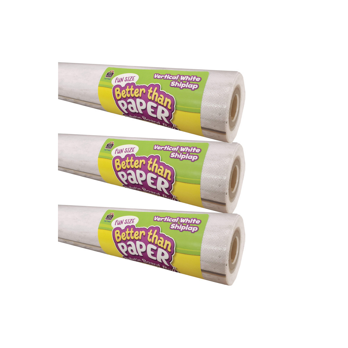 Teacher Created Resources® Fun Size Better Than Paper® Bulletin Board Roll, 18" x 12', Vertical White Shiplap, Pack of 3