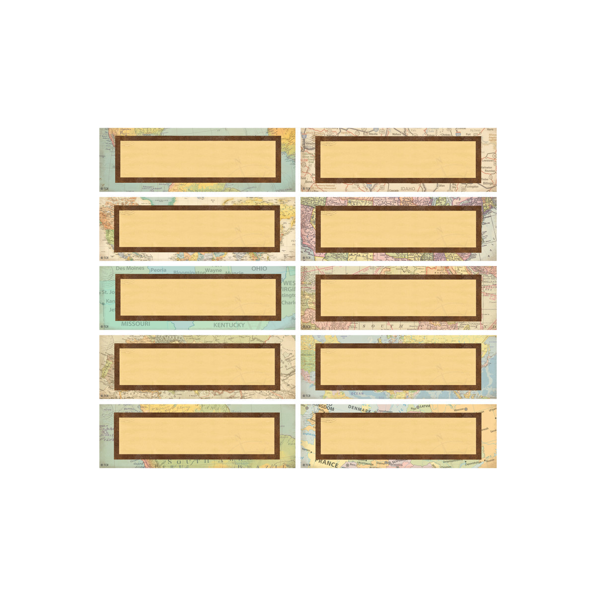 Decorate your whiteboard in a snap with these durable, reusable vintage map magnetic accents. Add flair to any magnetic receptive surface such as doors, desks, shelving, and bins. Accents have a write-on/wipe-off surface. Measure about 4-3/4" x 1-1/2". Each pack includes 20 pieces in 10 designs. Sold as 3 packs for a total of 60 accents.