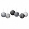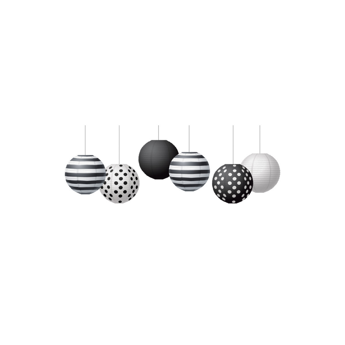 These paper lanterns are great for adding a splash of pizazz to your classroom. Coordinate with similar-patterned decoratives and popular color schemes to create the perfect look. Use them to fill up unused corners, hang accents off of them to organize work areas, or make a fun, inviting space for kids to learn. Includes 6 lanterns: one white, one black, one white with black polka dots, one black with white polka dots, two with black and white stripes. Each lantern is 8" in diameter.