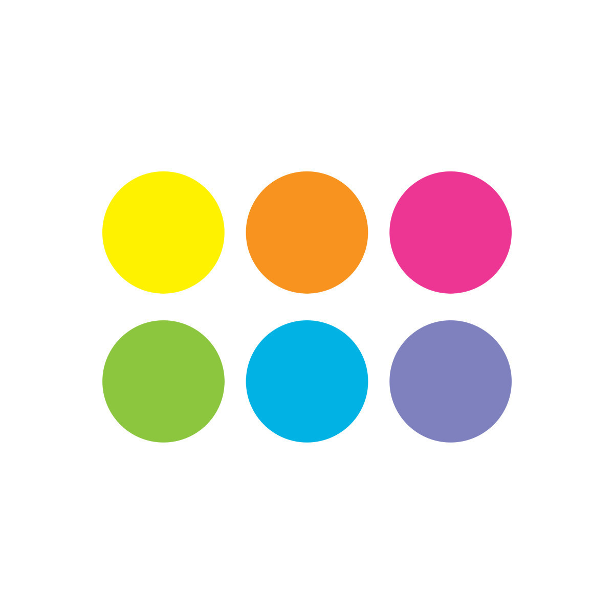 Use the write-on/wipe-off surface to practice writing words, to work on math problems, to label bins, or to jot down reminders or positive affirmations. The spots attach firmly to smooth, untextured surfaces. Remove protective backer before applying to surface. Removable and reusable. Measures 7" diameter. Each pack includes 6 pieces: aqua, lime, purple, orange, yellow and pink.