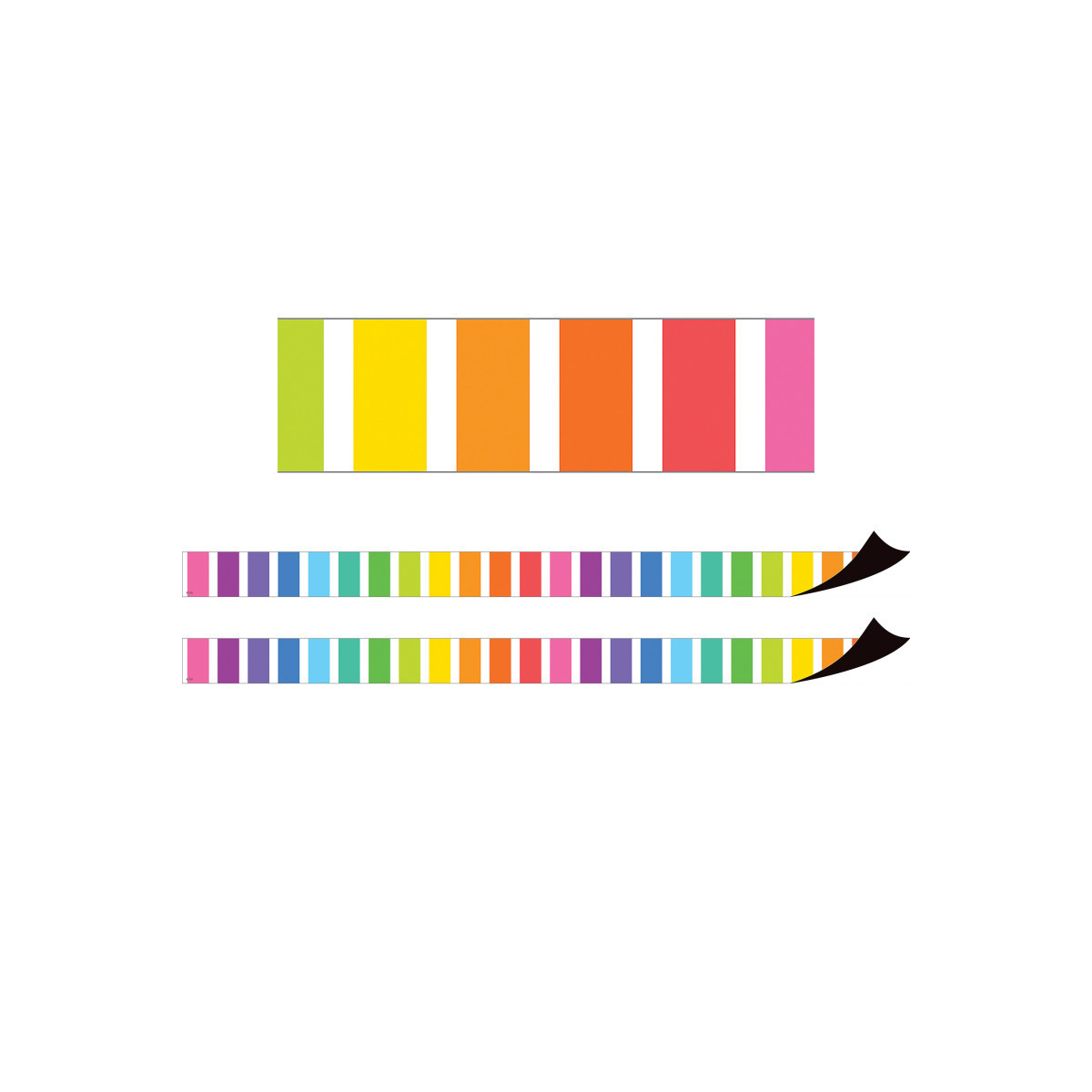 Decorate your whiteboard in a snap with durable, reusable magnetic decor! This Magnetic Border adds flair on other metal surface such as doors, desks, shelving, and bins. Cuts easily with scissors to make your own labels or game pieces. Each magnetic border is 24" x 1-1/2". Each pack includes 12 pieces for a total of 24 total feet per pack. Sold as 2 packs for a total of 24 pieces (48 feet).