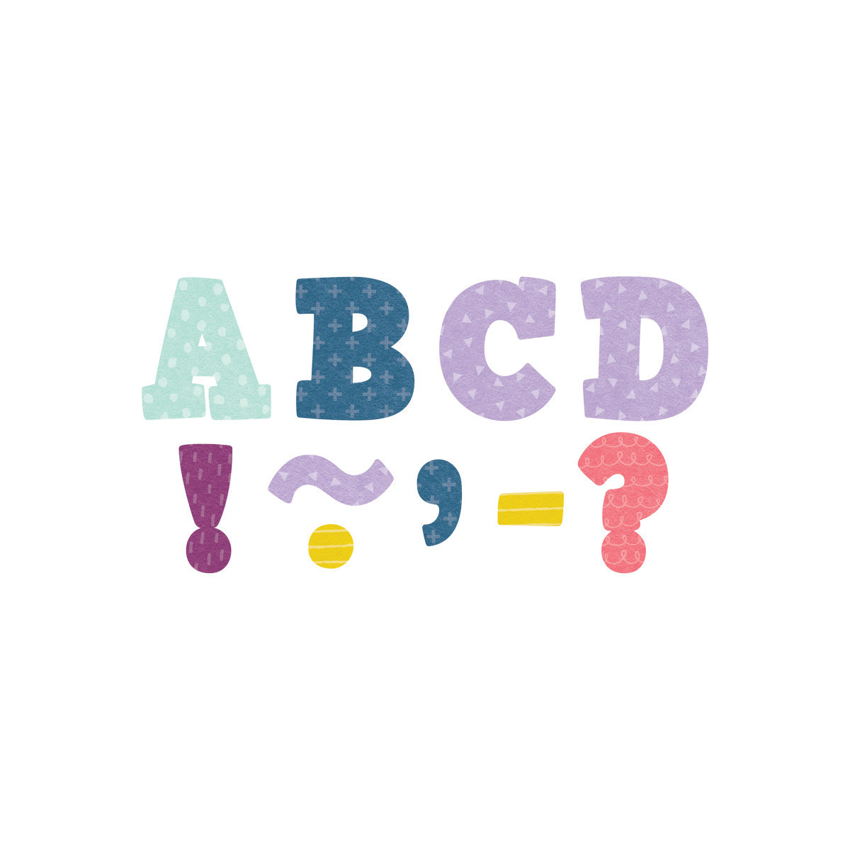 Decorate your whiteboard in a snap with durable, reusable magnetic decor! Add flair on other metal surface such as doors, desks, shelving, and bins. Each pack includes 55 pieces: 46 letters and 9 punctuation marks.