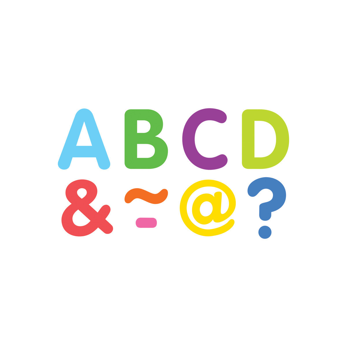 Decorate your whiteboard in a snap with durable, reusable magnetic decor! Add flair on other metal surface such as doors, desks, shelving, and bins. Each pack includes 87 pieces: 68 letters and 19 punctuation marks.
