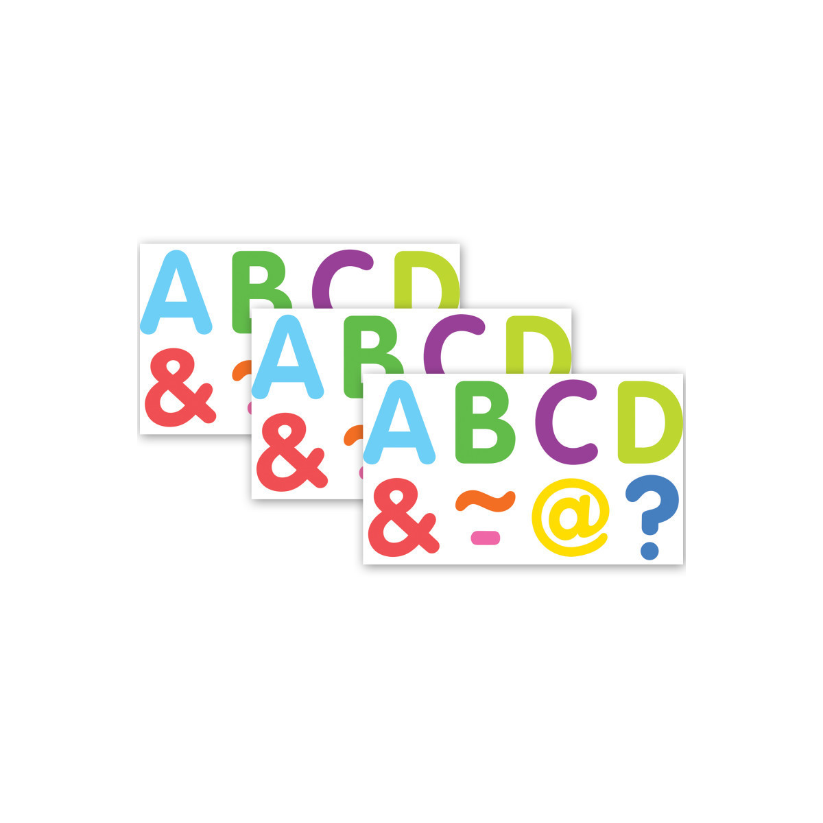 Decorate your whiteboard in a snap with durable, reusable magnetic decor! Add flair on other metal surface such as doors, desks, shelving, and bins. Each pack includes 87 pieces: 68 letters and 19 punctuation marks. Sold as 3 packs for a total of 261 pieces.