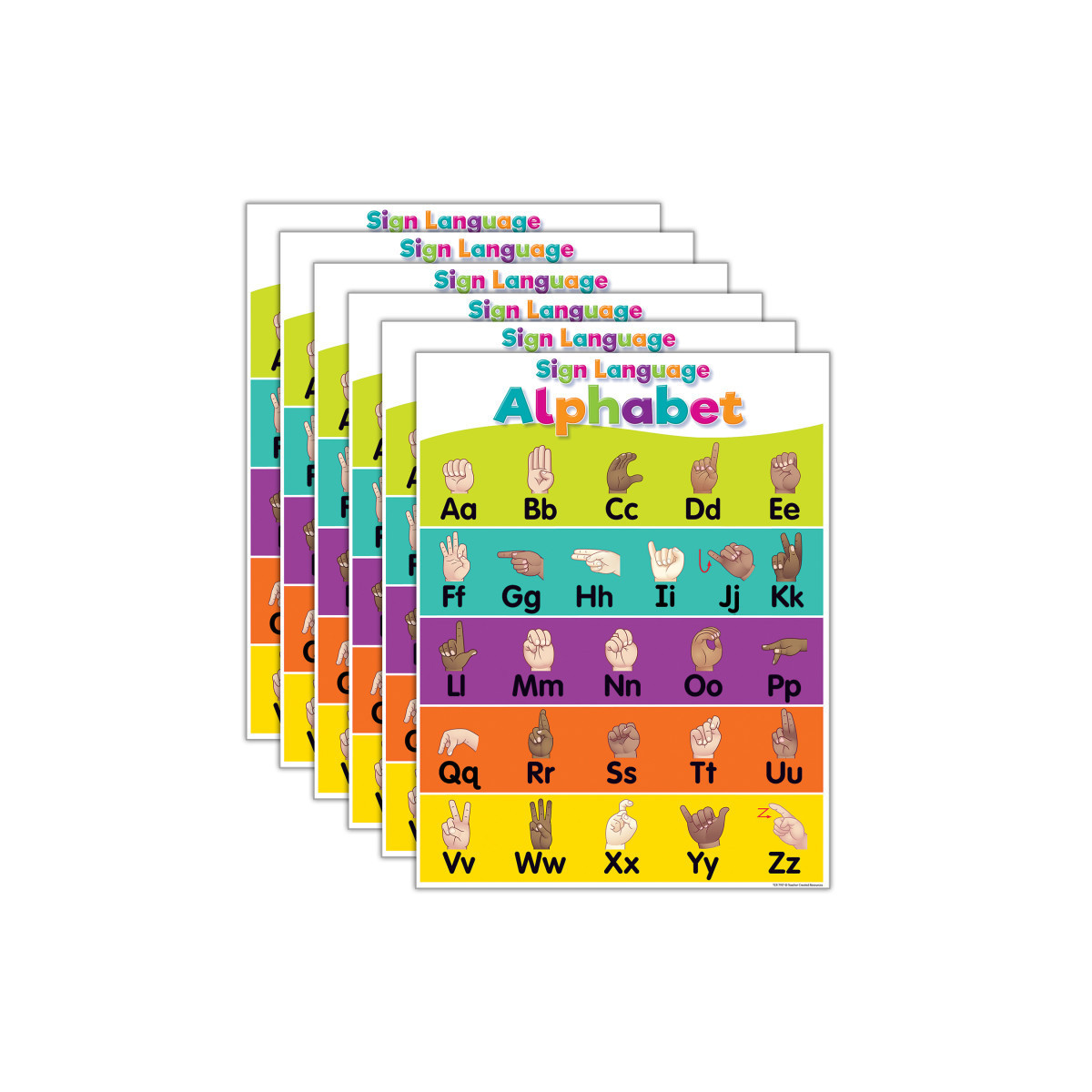 Teacher Created Resources® Colorful Sign Language Alphabet Chart, 17" x 22", Pack of 6