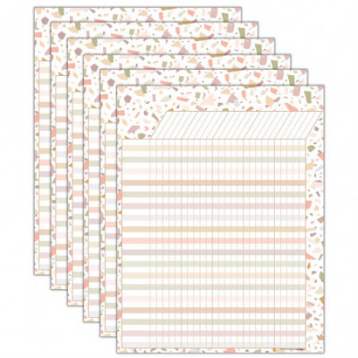These incentive charts are a great way to motivate students and perfect for tracking homework, attendance, goals, and more. Each chart features 25 columns to accommodate 5 weeks and 36 rows to track an entire classroom roster. The smooth, durable write-on/wipe-off surface is perfect for writing on and is easy to wipe down or spray with disinfectant to help prevent the spread of germs. Slightly rounded corners with UV coating on the front. Measures 17" x 22".