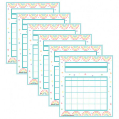 These incentive charts are a great way to motivate students and perfect for tracking homework, attendance, goals, and more. Each chart features 25 columns to accommodate 5 weeks and 36 rows to track an entire classroom roster. The smooth, durable write-on/wipe-off surface is perfect for writing on and is easy to wipe down or spray with disinfectant to help prevent the spread of germs. Slightly rounded corners with UV coating on the front. Measures 17" x 22". Sold as a pack of 6 charts.