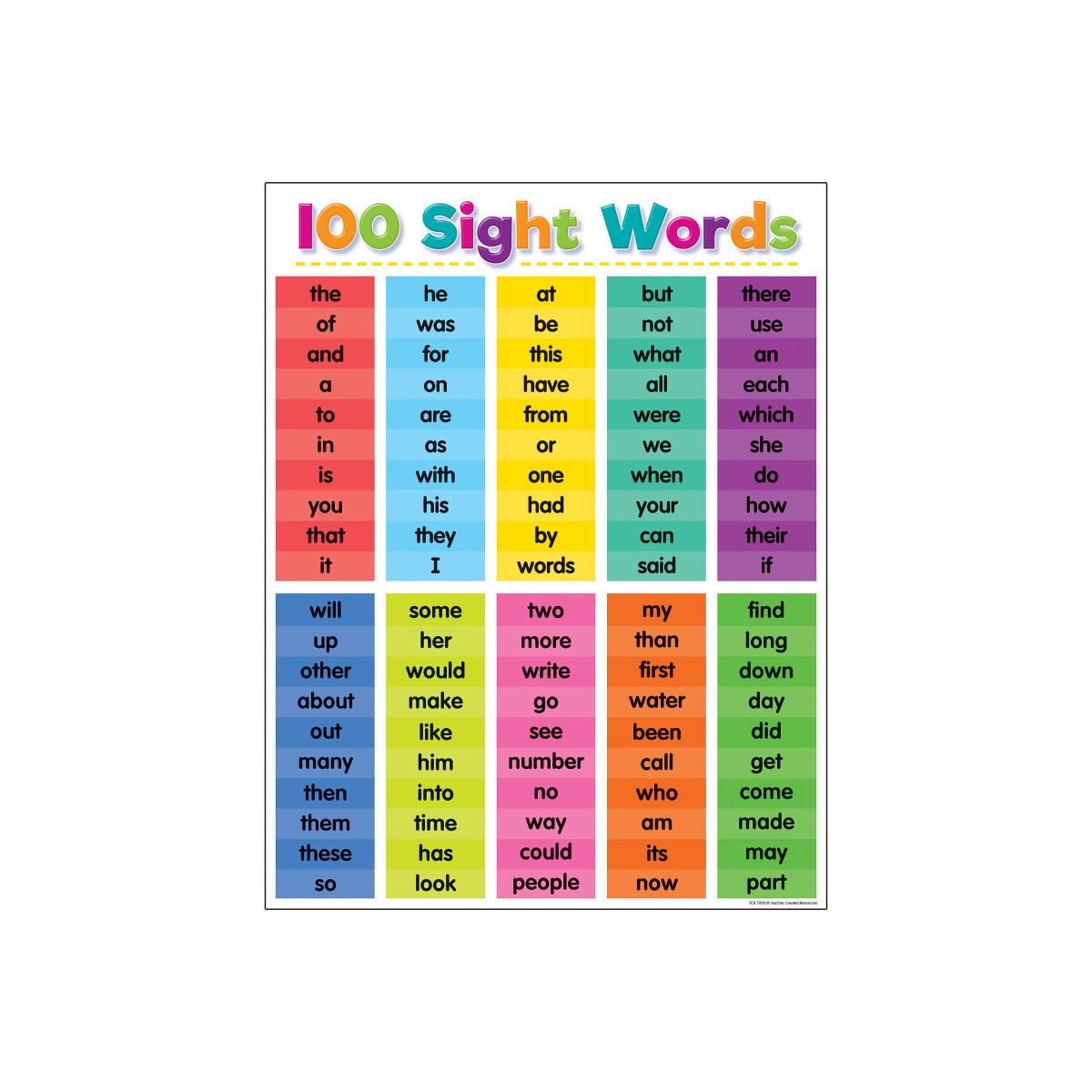 Convenient, useful learning tools that decorate as they educate! The Colorful 100 Sight Words chart measures 17" x 22". Related lessons and activities are provided on the back of the chart.
