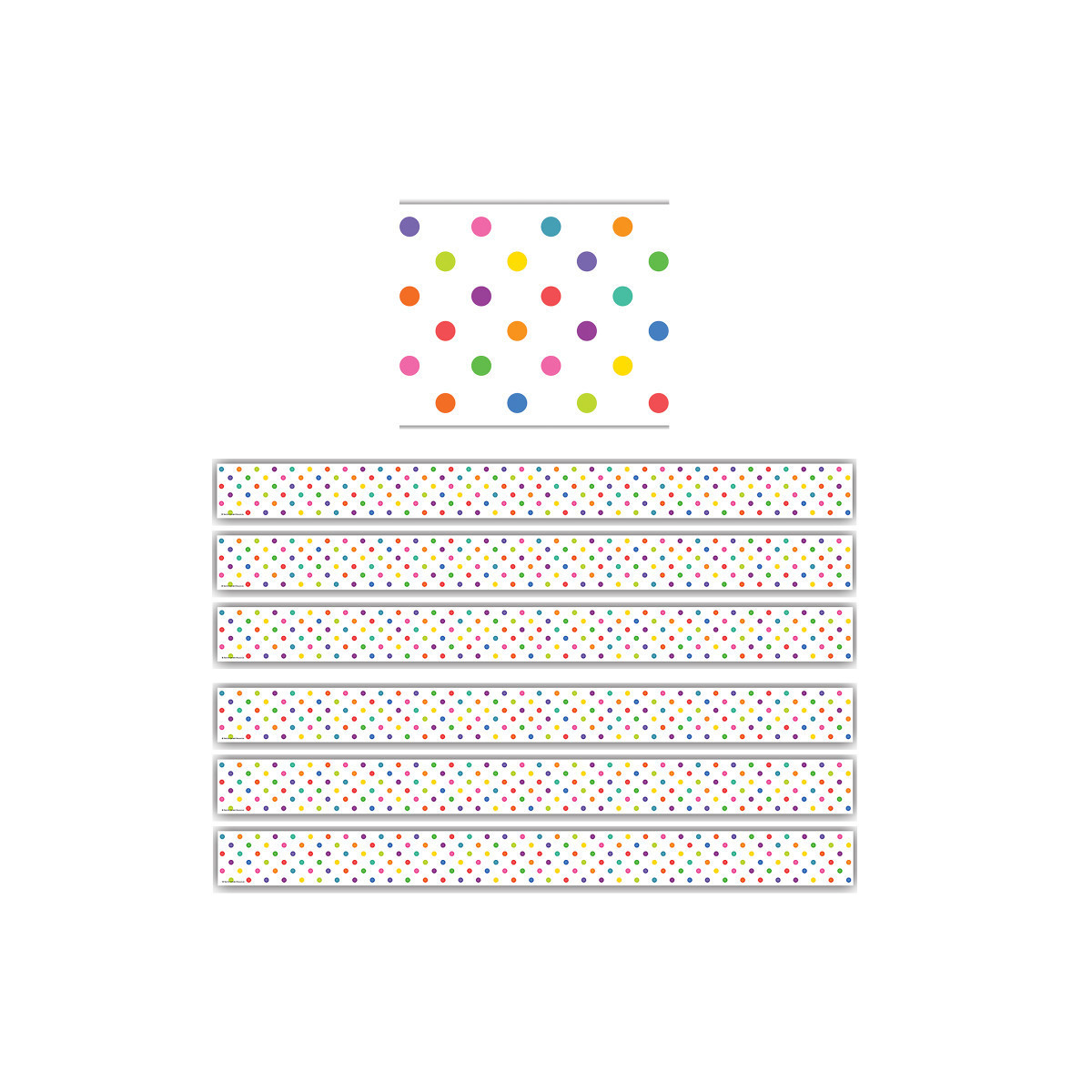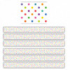 Use colorful border trim to liven up your classroom! Create fresh looks for bulletin boards, windows, walls, and class projects. Mix and match with coordinating products (stickers, notepads, awards, etc.) for a classroom theme. Each pack has 12 pieces (3'' x 35'') for a total length of 35 feet of trim! Sold as 6 packs for a total of 72 strips (210 feet).