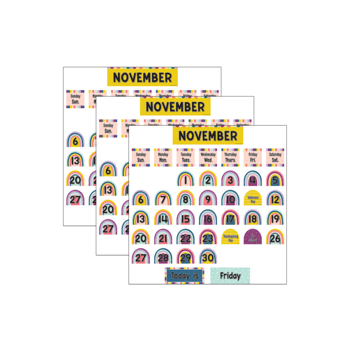 Calendar pieces can fit into most pocket charts. Great for classrooms with limited wall space! Great way to decorate or update any daycare or classroom setting. Each pack includes 104 total cards: 12 monthly headers (10-1/4" x 2-3/4"), 84 calendar cards (2-5/8" wide), and 8 Day of the Week cards (5-3/4" x 2-3/8"). Sold as 3 packs for a total of 312 cards.
