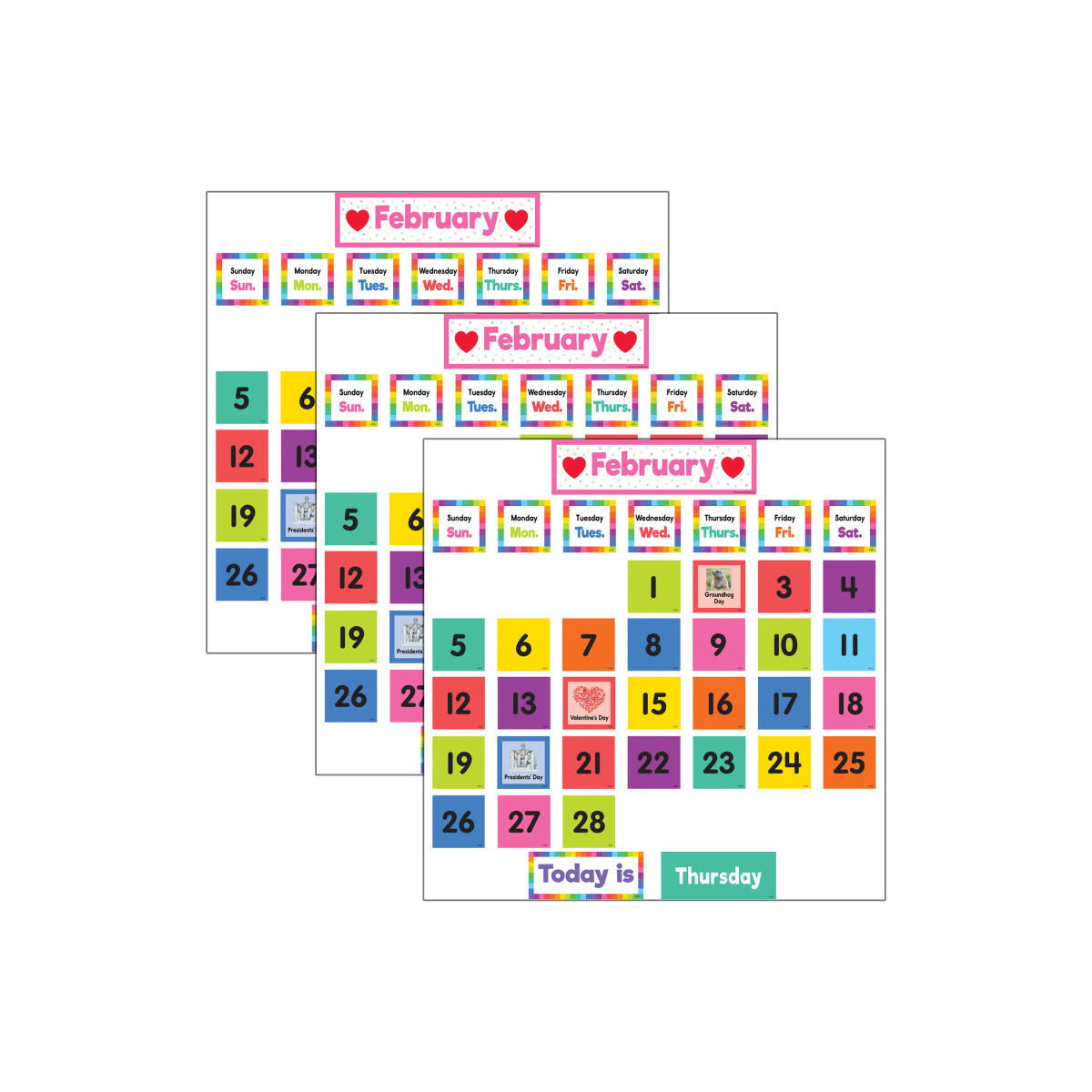 Calendar pieces can fit into most pocket charts. Great for classrooms with limited wall space! Great way to decorate or update any daycare or classroom setting. Includes 104 total cards: 12 monthly headers (10-1/4" x 2-3/4"), 84 calendar cards (2-5/8" wide), and 8 Day of the Week cards (5-3/4" x 2-3/8"). Sold as 3 packs for a total of 312 cards.