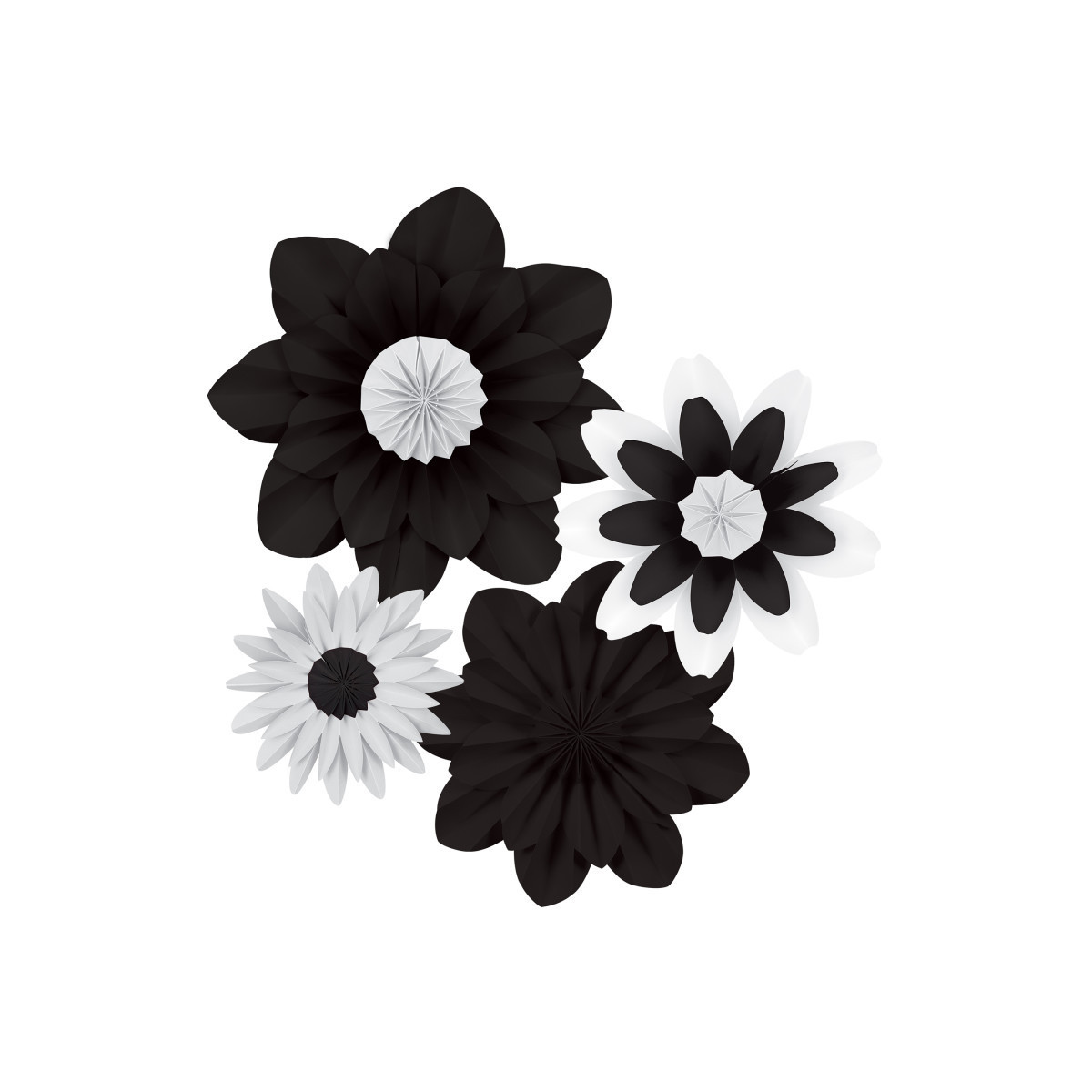 Create a colorful and unique look with these gorgeous paper flowers. Add depth and dimension to walls, backdrops, table decorations, and much more! No assembly required—opens easily and stays together with a hidden magnet. Folds back up for easy storage, so they can be used again and again. Each pack includes 4 flowers: one 16", two 11", and one 8" in diameter.