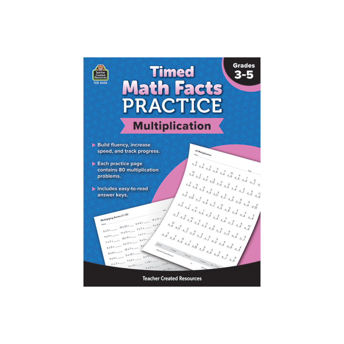 Build fluency, increase speed, and track progress with this timed math facts practice. This book will help students gain fluency, flexibility, confidence, and speed in solving multiplication problems, and each unique page offers another opportunity to practice and improve. Tracking sheets make monitoring progress easy, and easy-to-check answer keys are included for every practice page. 64 pages.
