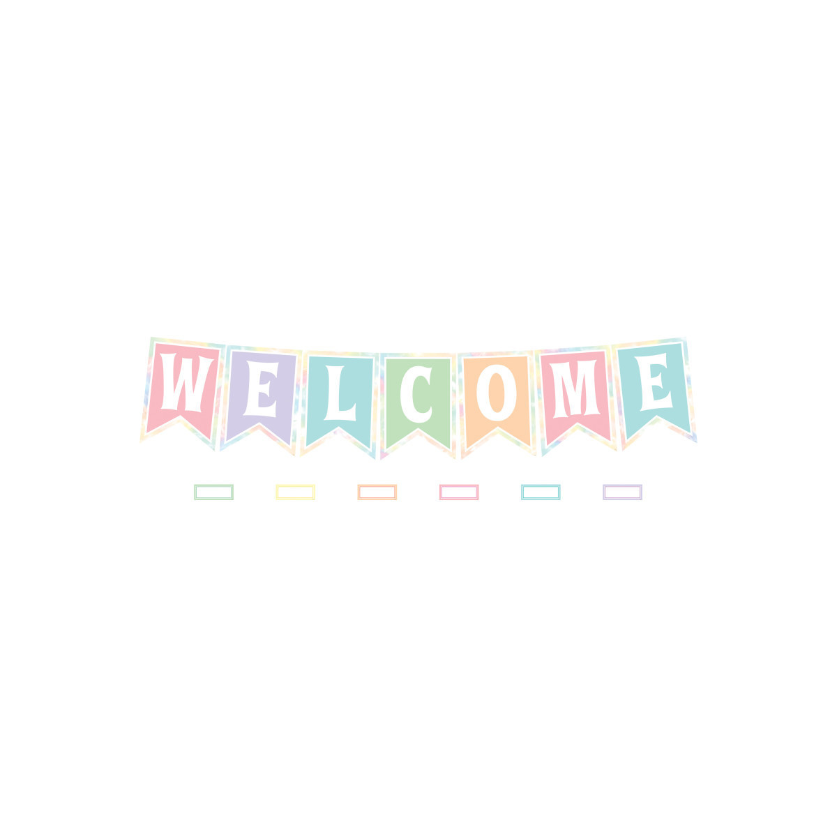 Features: 7 title pieces, spelling out "Welcome", 46 multi-purpose, blank label accents, Bulletin board guide with set-up and activity suggestions, Shiny protective coating for durability