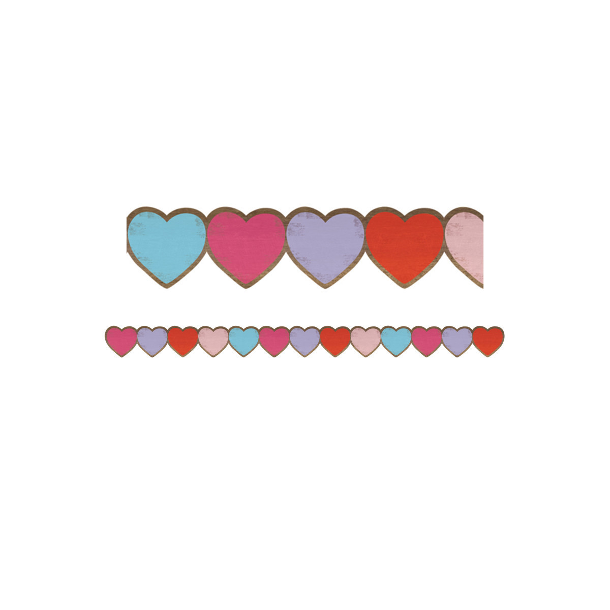 Use this colorful heart border trim to liven up your classroom! Create fresh looks for bulletin boards, windows, walls, and class projects. Mix and match with coordinating products (stickers, notepads, awards, etc.) for a classroom theme. Strips measure about 2-3/4" x 35". Each pack includes 12 strips.