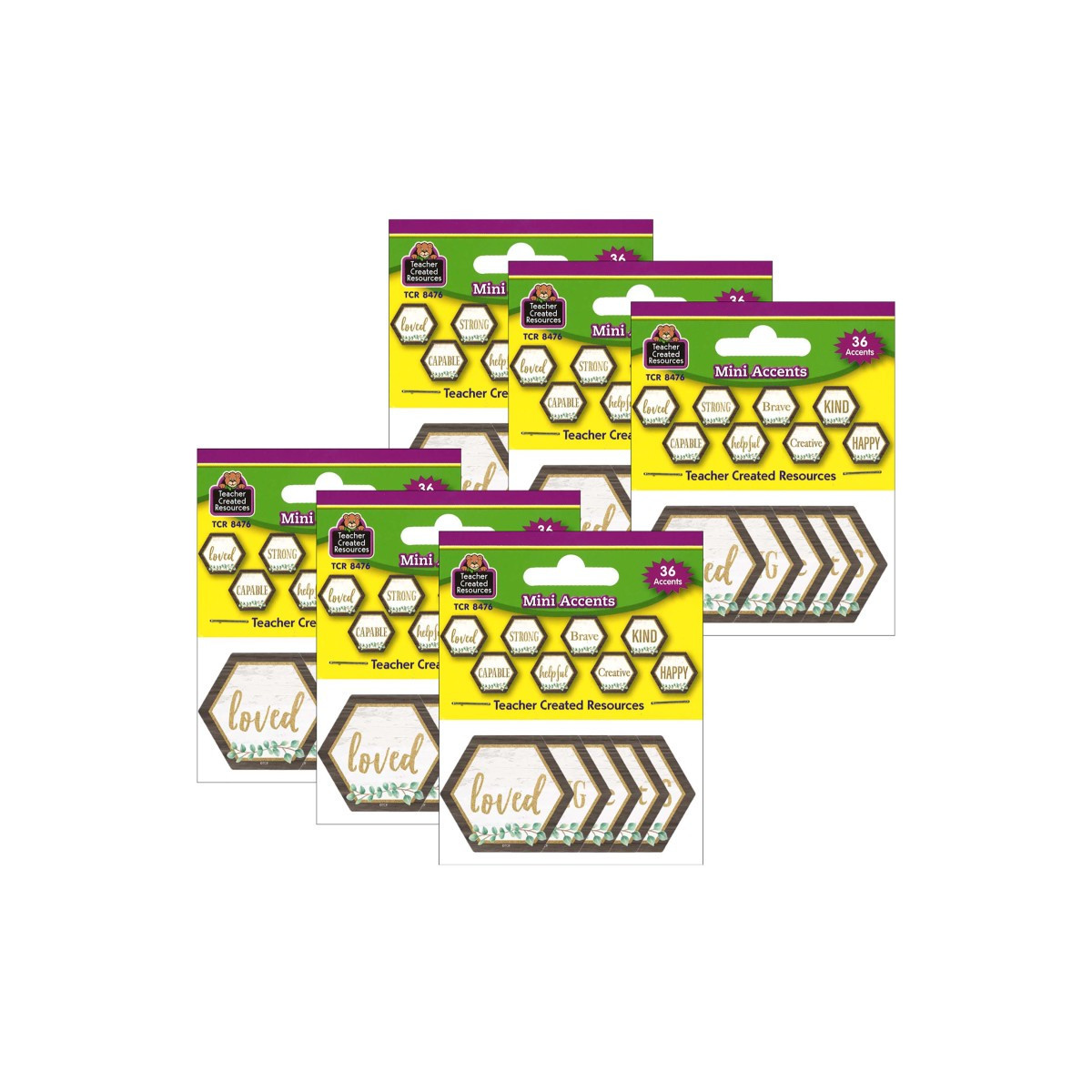 Use these soft green and wood-grain inspired accents with positive sayings in muted gold to dress up classroom walls and doors, label bins and desks, or accent bulletin boards. Each accent is about 2-5/8" x 2-5/8". Each pack includes 36 pieces. Sold as 6 packs for a total of 216 pieces.