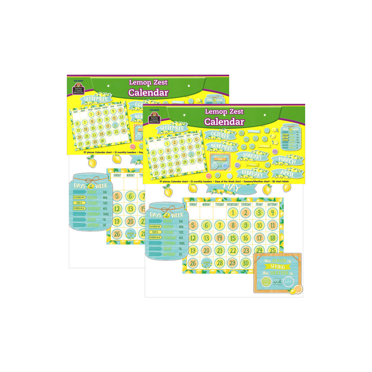 This zesty, lemon-inspired calendar display comes with easy-to-read number pieces, colorful monthly headers, and additional pieces for holidays and special occasions as well as yesterday, today, and tomorrow. Blank calendar measures 24" x 18". Each set includes 97 total pieces. Sold as a pack of 2 complete sets.