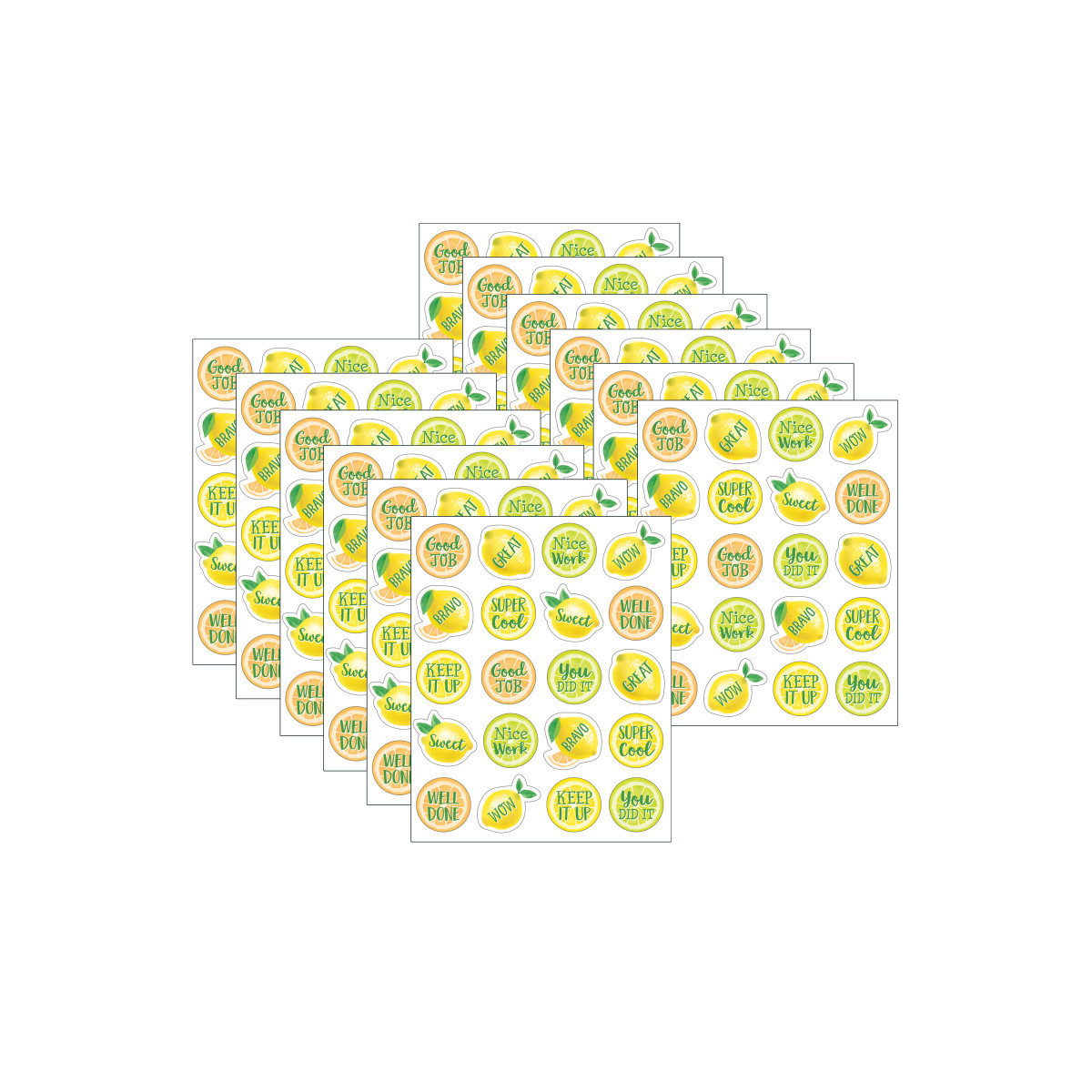 These Lemon Zest inspirational stickers are acid-free and lignin-free. Stickers are great for rewards, encouragement, prizes, arts and crafts, incentive charts and more. Measure approximately 1". Each pack includes 120 stickers in 10 designs. Sold as 12 packs for a total of 1440 stickers.