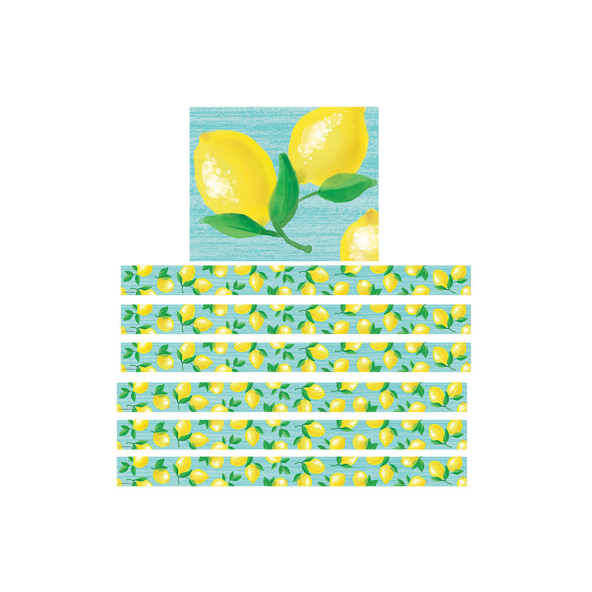 Use this colorful Lemon Zest Straight Border Trim to liven up your classroom! Create fresh looks for bulletin boards, windows, walls, and class projects. Mix and match with coordinating products (stickers, notepads, awards, etc.) for a classroom theme. Strips measure 3" x 35". Each pack includes 12 pieces for a total of 35 feet of border. Sold as 6 packs for a total of 72 strips (210 feet).