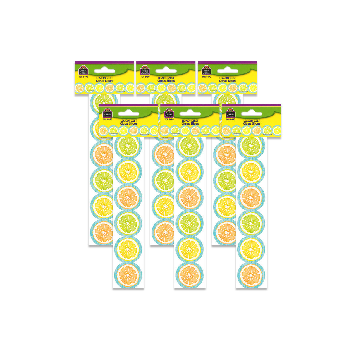 Use this colorful Lemon Zest Citrus Slices Die-Cut Border Trim to liven up your classroom! Create fresh looks for bulletin boards, windows, walls, and class projects. Mix and match with coordinating products (stickers, notepads, awards, etc.) for a classroom theme. Strips measure 2.75" x 35". Each pack includes 12 pieces for a total of 35 feet of border. Sold as 6 packs for a total of 72 strips (210 feet).
