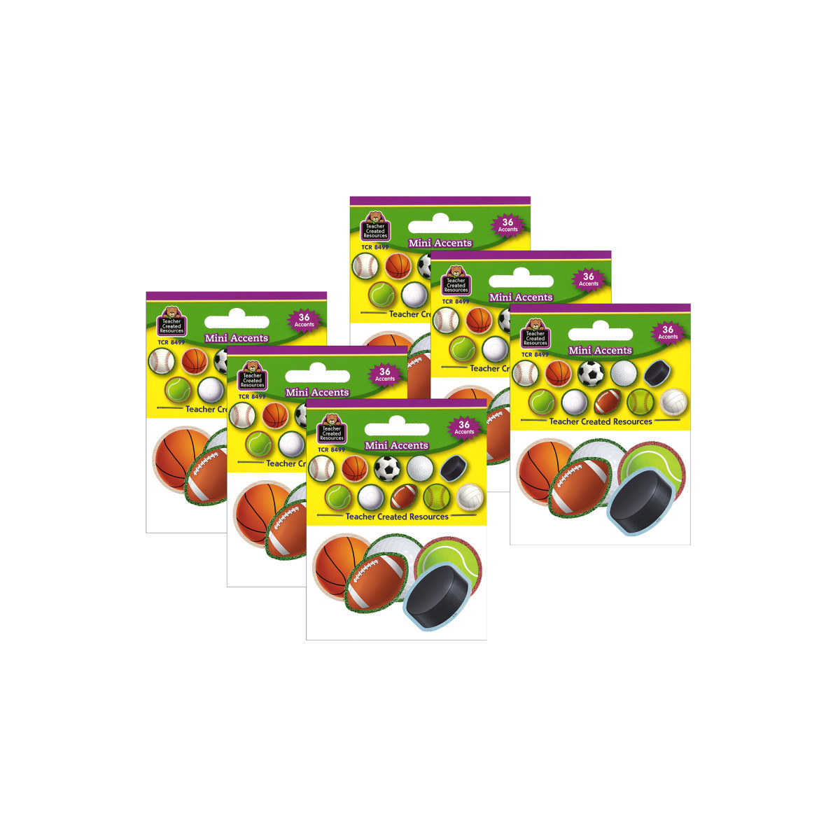 Have fun decorating with these sports accents that measure about 2-5/8". Use them to accent displays, to fill in monthly calendars, or as pieces for learning games like sorting, patterning, and graphing. Each pack includes 36 pieces in 2 colors. Sold as 6 packs for a total of 216 accents.