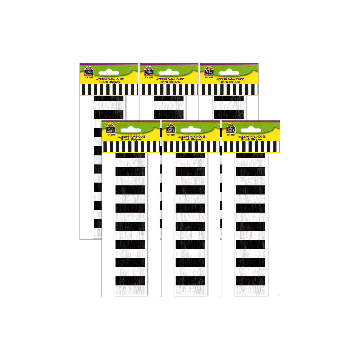 Use this black and white border trim to liven up your classroom! Create fresh looks for bulletin boards, windows, walls, and class projects. Mix and match with coordinating products (stickers, notepads, awards, etc.) for a classroom theme. Each pack includes 12 strips for a total of 35 feet per pack. Sold as 6 packs for a total of 72 strips (210 feet).
