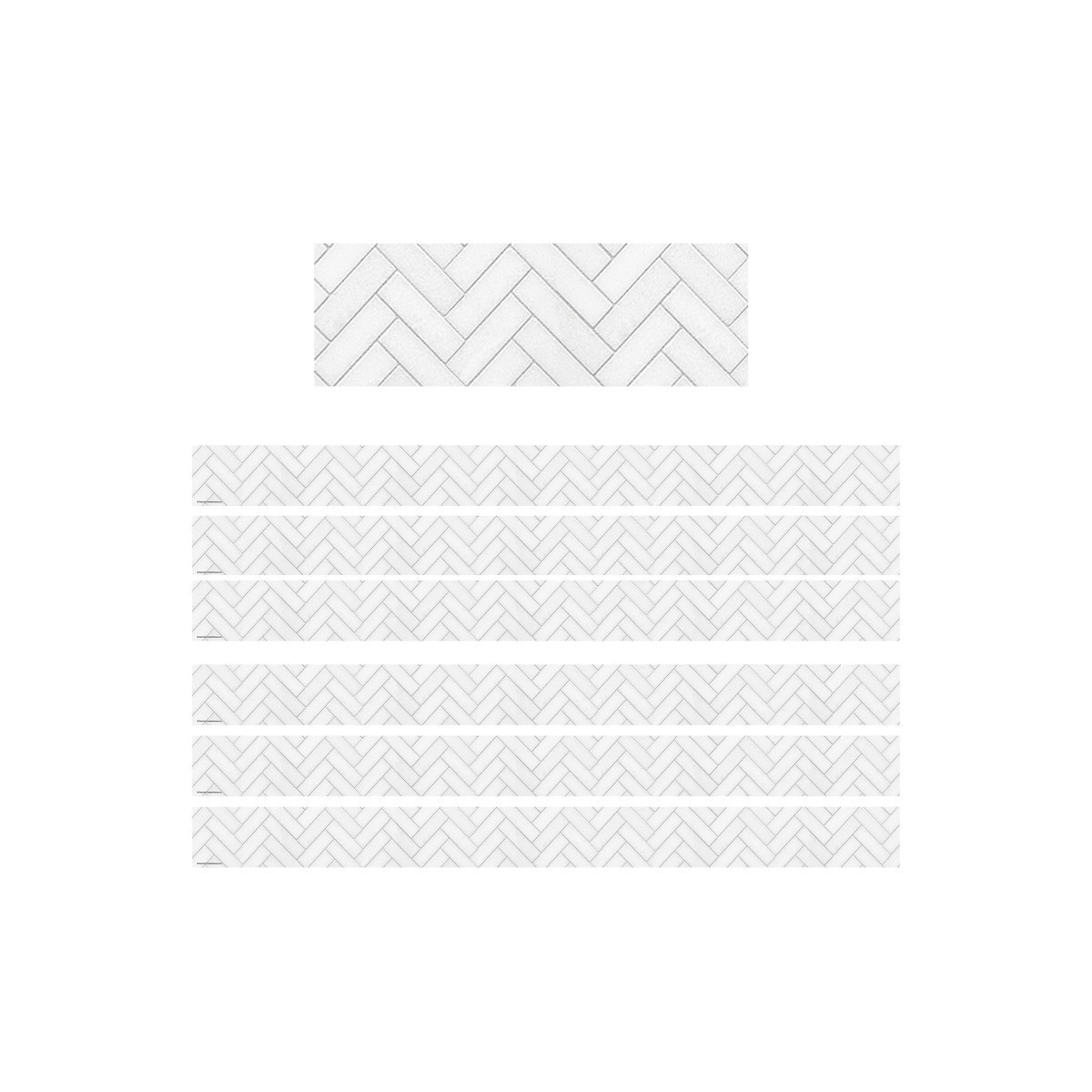 Use this herringbone border trim to liven up your classroom! Create fresh looks for bulletin boards, windows, walls, and class projects. Mix and match with coordinating products (stickers, notepads, awards, etc.) for a classroom theme. Each pack includes 12 strips for a total of 35 feet per pack. Sold as 6 packs for a total of 72 strips (210 feet).