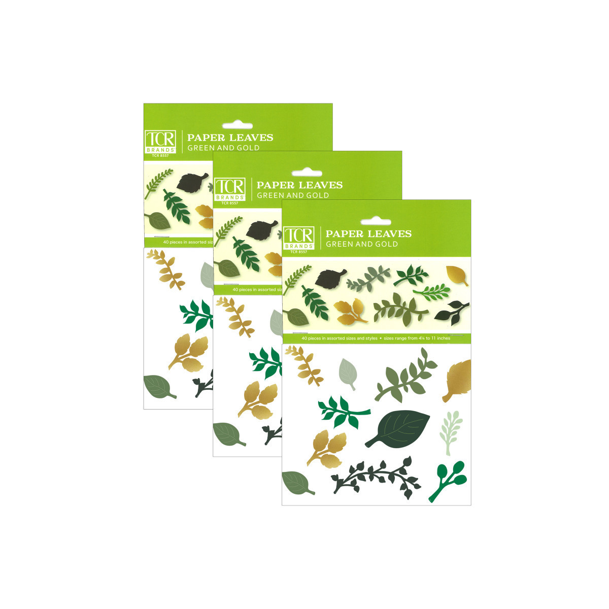 Use these leaves to enhance your paper flowers, wall and table displays, hanging decor, and much more! Sizes range from 4-1/4" to 11". Each pack includes 40 pieces in assorted sizes and styles. Sold as 3 packs for a total of 120 pieces.