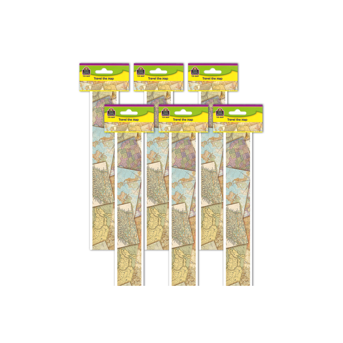 Use colorful border trim to liven up your classroom! Create fresh looks for bulletin boards, windows, walls, and class projects. Mix and match with coordinating products (stickers, notepads, awards, etc.) for a classroom theme. Strips measure 3" x 35". Each pack includes 12 pieces for a total of 35 feet of border. Sold as 6 packs for a total of 72 strips (210 feet).