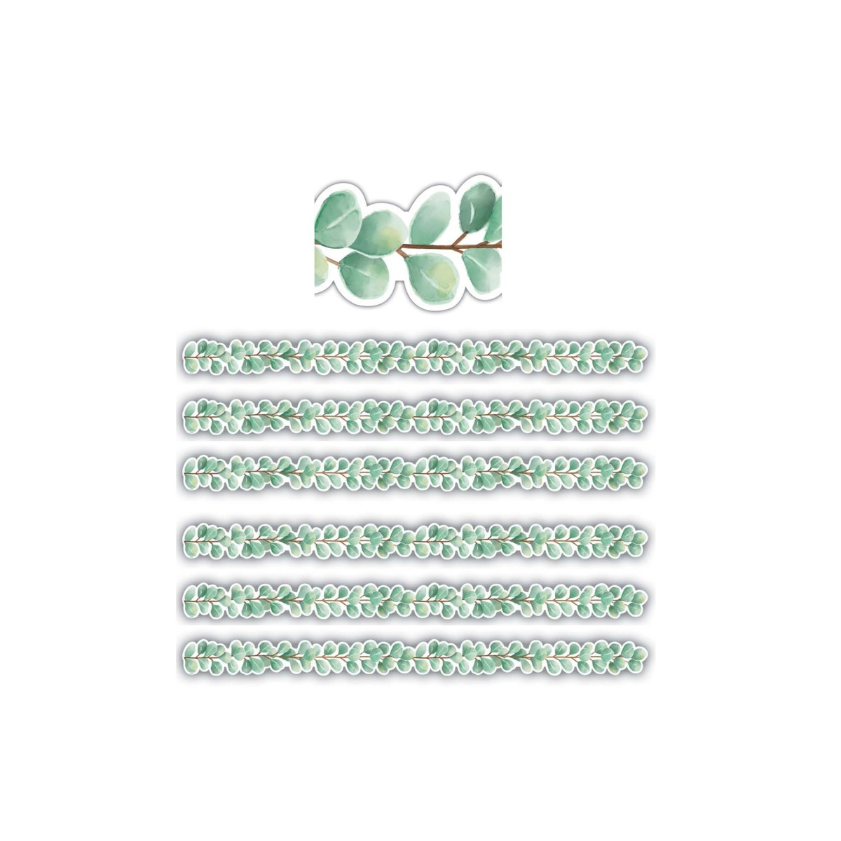 Use this fresh, leafy green border trim to liven up your classroom. Create unique looks for bulletin boards, windows, walls, and class projects. Mix and match with coordinating products (stickers, notepads, awards, etc.) for a classroom theme. Strips measure 2-3/4" x 35". Each pack includes 12 strips for a total of 35 feet per pack. Sold as 6 packs for a total of 72 strips (210 feet).