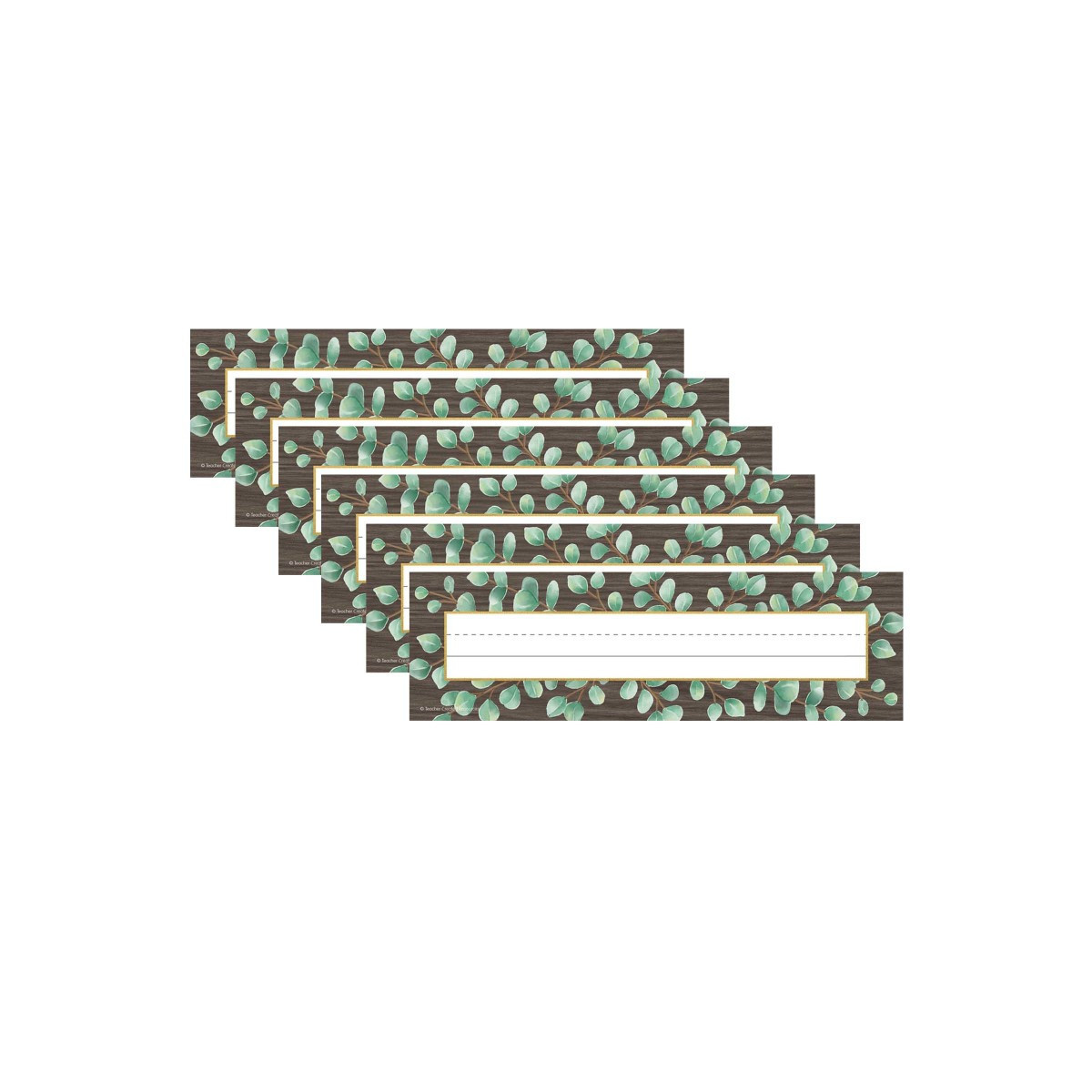 Children love to have a place especially for them. The soft greenery against the dark wood design is sure to be a favorite in any classroom. Label desks, learning centers, portfolios, materials, and more! Name plates measure 11-1/2" x 3-1/2". Each pack includes 36 nameplates. Sold as 6 packs for a total of 216 nameplates.