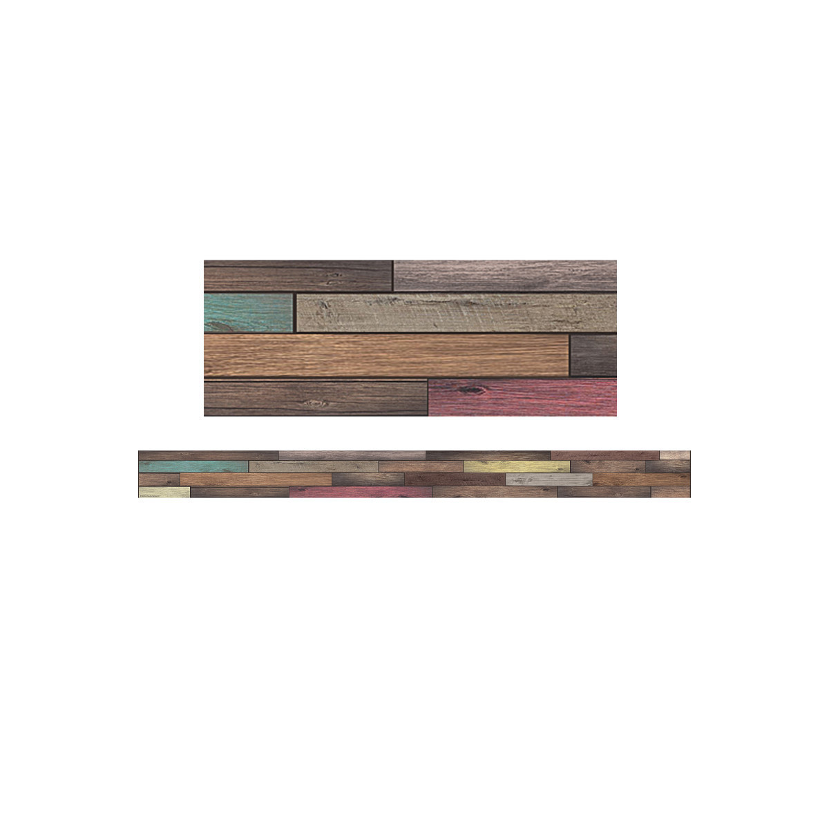 Use this colorful Home Sweet Classroom Reclaimed Wood Border Trim to liven up your classroom! Create fresh looks for bulletin boards, windows, walls, and class projects. Mix and match with coordinating products (stickers, notepads, awards, etc.) for a classroom theme. Each pack has 12 pieces (3" x 35") for a total length of 35 feet of trim!