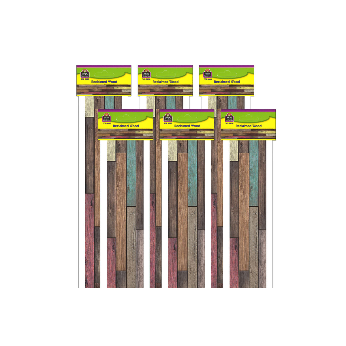 Use this colorful Home Sweet Classroom Reclaimed Wood Border Trim to liven up your classroom! Create fresh looks for bulletin boards, windows, walls, and class projects. Mix and match with coordinating products (stickers, notepads, awards, etc.) for a classroom theme. Each pack has 12 pieces (3" x 35") for a total length of 35 feet of trim. Sold as 6 packs for a total of 72 strips (210 feet).