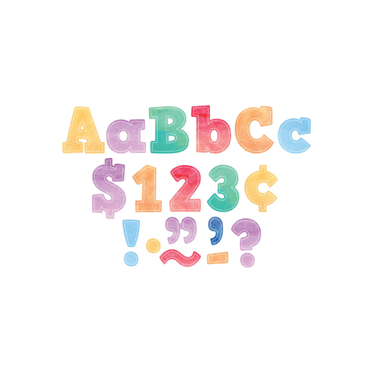 Use these letters to create bulletin boards, classroom centers, signs, banners, and other displays. They punch out easily and are coated for durability. The colors and designs coordinate with popular decorative products. Each pack includes 230 total pieces: 61 uppercase letters, 95 lowercase letters, 20 numbers 0 to 9, 40 punctuation marks, and 14 Spanish accent marks.