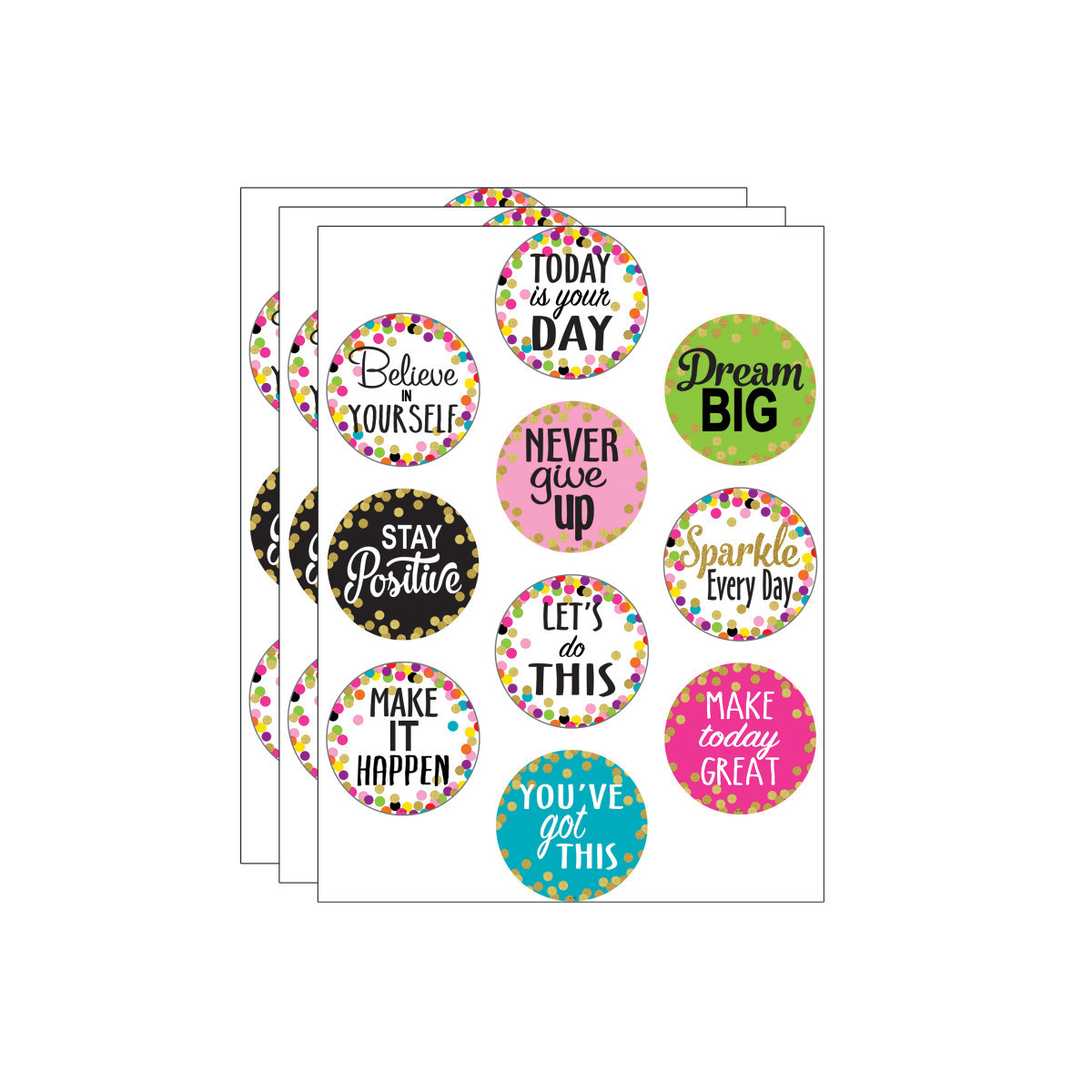 Use this decorative artwork to dress up classroom walls and doors, label bins and desks, or accent bulletin boards. Pieces measure 6". 10 designs per pack. Each pack includes 30 pieces. Sold as 3 packs for a total of 90 accents.