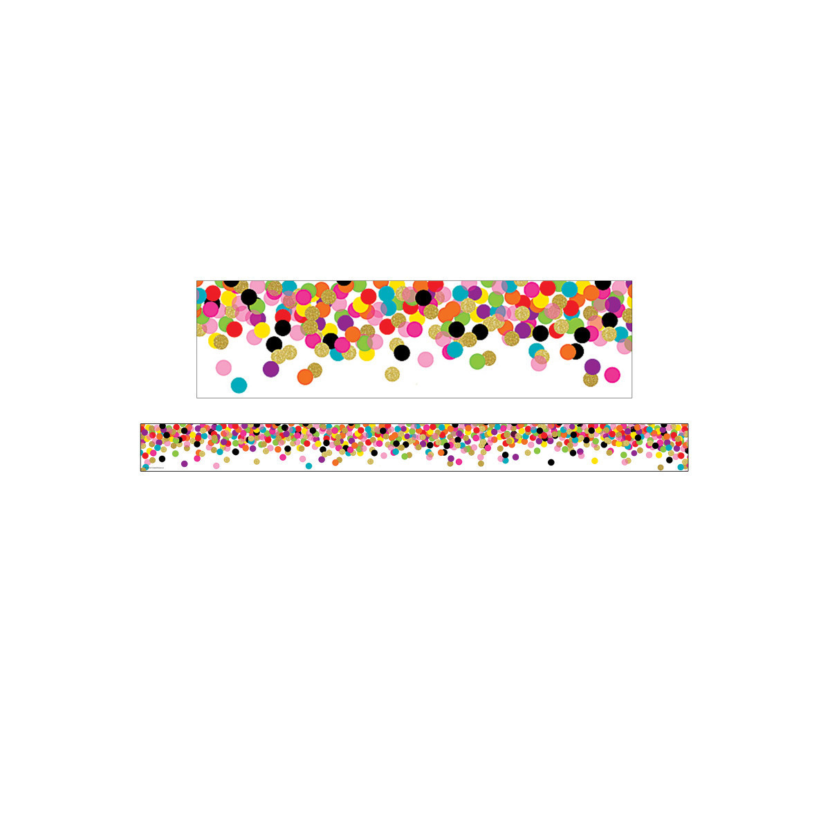 Use this Confetti Straight Rolled Border Trim to liven up your classroom! Create fresh looks for bulletin boards, windows, walls, and class projects. Mix and match with coordinating products (stickers, notepads, awards, etc.) for a classroom theme. 50 foot continuous roll. (3" x 50')