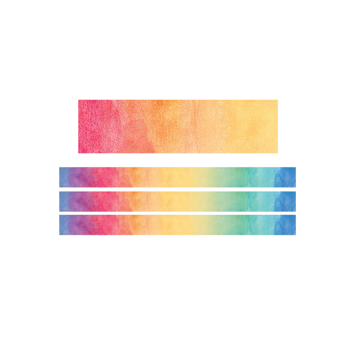 Use this Watercolor Straight Rolled Border Trim to liven up your classroom! Create fresh looks for bulletin boards, windows, walls, and class projects. Mix and match with coordinating products (stickers, notepads, awards, etc.) for a classroom theme. 50 foot continuous roll (3" x 50'). Sold as a pack of 3 rolls.