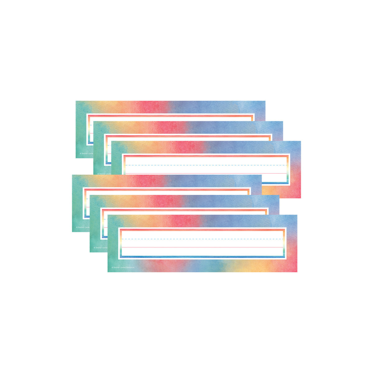 Use them to help teachers and substitute teachers learn students’ names. Use them to label learning centers, storage areas, and portfolio collections. Laminate them for use as vocabulary flash cards, or work bank labels. Measures approximately 3-1/2" x 11-1/2". Each pack includes 36 name plates. Sold as 6 packs for a total of 216 name plates.