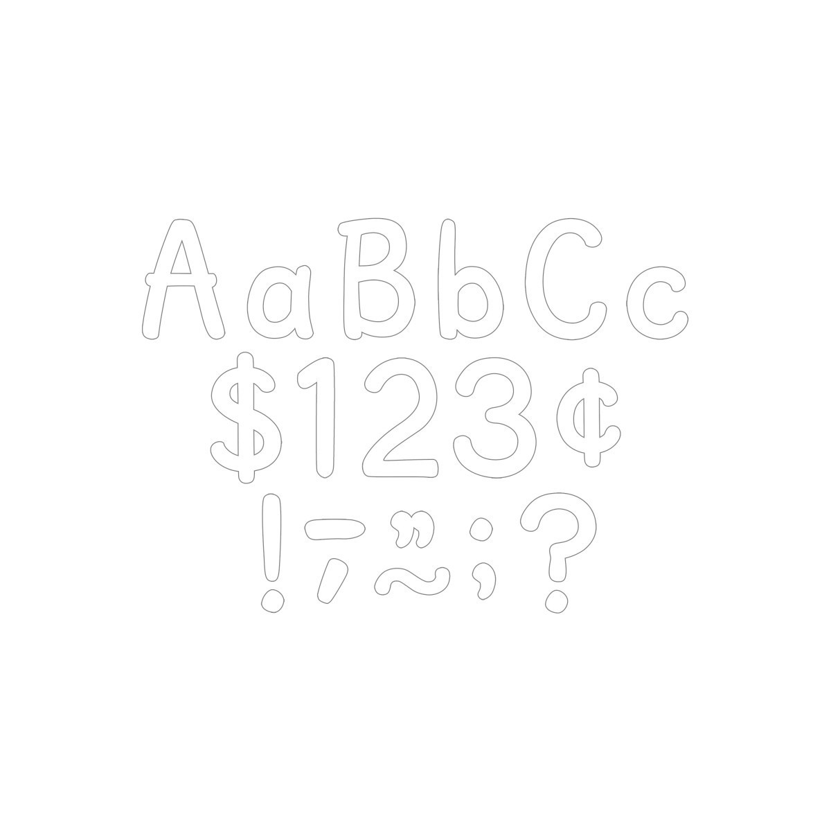 Use these contemporary, easy-to-read letters to create bulletin boards, classroom centers, signs, banners, and other displays. Letters to create bulletin boards, classroom centers, signs, banners, and other displays. The colors and designs coordinate with our popular decorative products. They punch out easily and are coated for durability. Each pack includes 257 total pieces: 76 uppercase letters, 97 lowercase letters, 20 numbers 0 to 9, 47 punctuation marks & symbols, 17 Spanish accent marks. Sold as 2 packs for a total of 514 pieces.