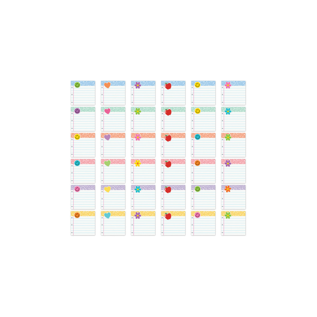 Have fun decorating with these colorful little pieces that measure about 2-5/8". Use them to accent displays, to fill in monthly calendars, or as pieces for learning games like sorting, patterning, and graphing. Pieces measure approximately 2-1/2" x 2-1/2". Each pack includes 36 pieces in 36 designs.