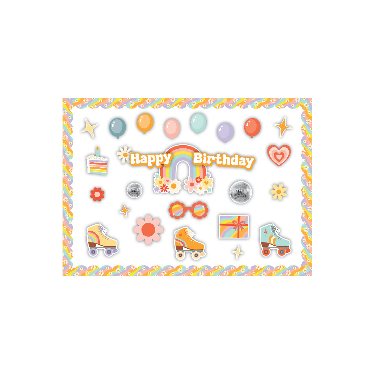 Create a fun and festive atmosphere with this all-in-one decorating kit! With an easy-to-assemble setup, you can focus on making lasting memories without the hassle. Plus, you can add your own creative spin to customize the look and make it truly unique to your style. Includes 2 pieces spelling out "Happy Birthday", 1 rainbow centerpiece, 12 month pieces, 78 accents (ranging in size from 2.25" to 13"), 2 hanging paper honeycomb balls (6" in diameter), 2 flowers with honeycomb balls (6" in diameter), 24 borders (12.5" x 2.1" each, 25 ft. total). 121 total pieces.