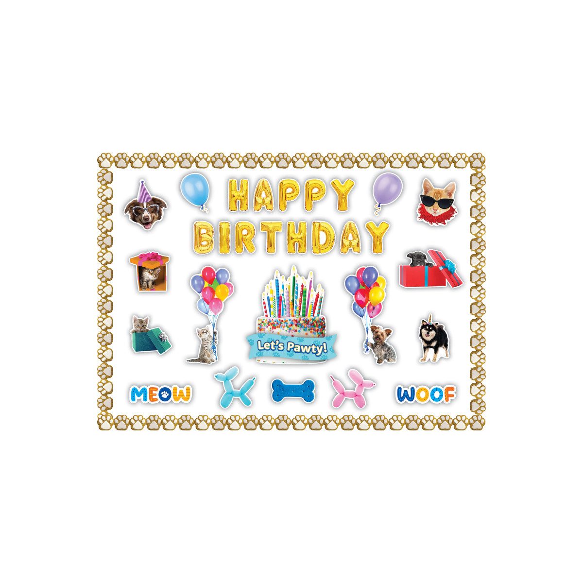 - Festive Birthday Décor – Features "Happy Birthday" lettering, a cake centerpiece, and 3 fun saying pieces.