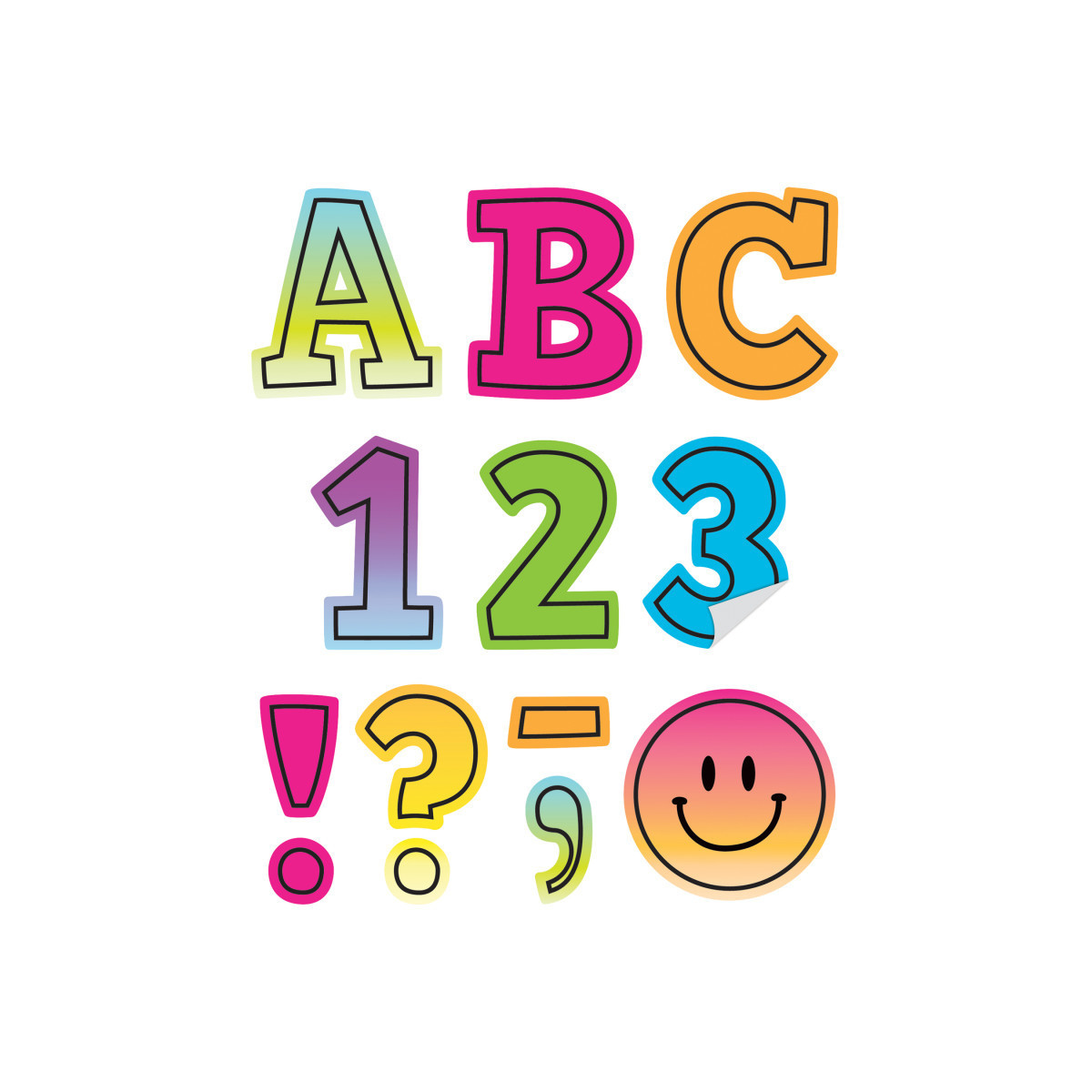 Enhance any educational setting and keep students organized and informed with these stylish self-adhesive letters. These letters are removable and repositionable, taking the hassle out of creating bulletin boards, stations, teaching aids, and labels. Plus, they are perfect for students to use to create display boards for state projects, presentations, science fairs, and more! Made from durable materials, our self-adhesive letters ensure long-lasting displays that withstand daily classroom use. Their easy-to-peel backing makes them a breeze to apply—no more struggling with crooked letters. Each pack includes 326 total pieces: 185 uppercase letters, 30 numbers 0 to 9, 40 punctuation marks, 64 cute symbols, 7 Spanish accent marks.