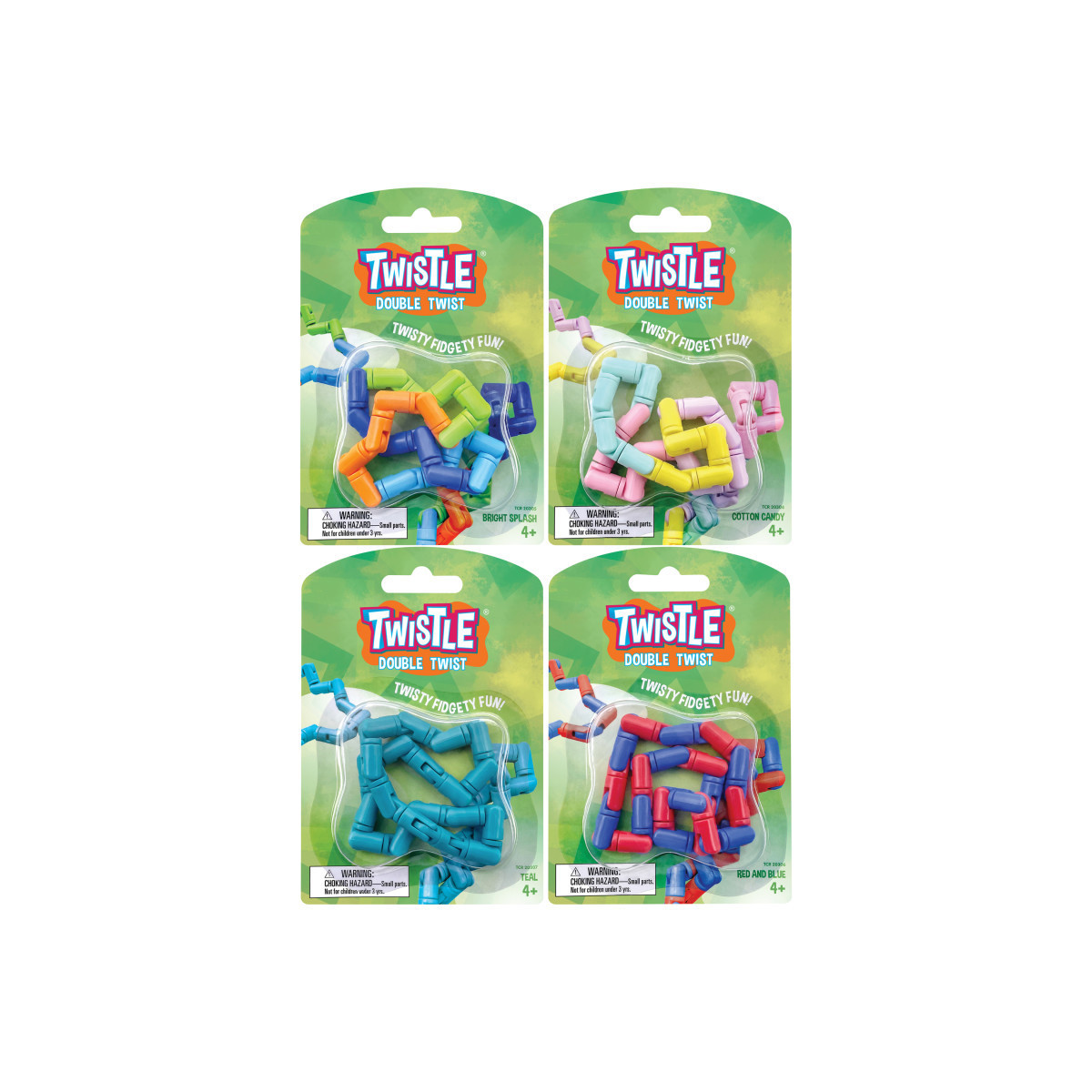 Sold as a pack of 4 Twistles in Cotton Candy, Bright Splash, Red & Blue, and Teal