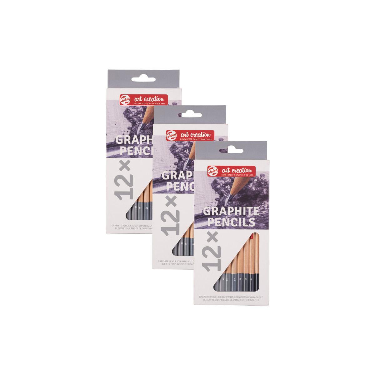 This set of graphite pencils is a great basic to have in your pencil collection. The different grades of hardness allow you to easily create sharp and soft lines in your drawings and sketches. Each set includes 12 pencils (2H – H – HB – B – 2B – 3B – 4B – 5B – 6B – 7B – 8B – 9B). These graphite pencils come in different grades of hardness. The softer the pencil, the darker the shade will be. Softer grades are ideal for sketching and drawing, while the harder grades are ideal to use for more detailed work like graphic drawings. The pencils come in cardboard packaging with a sturdy tray to keep your pencils organized. The packaging is fully recyclable and provides good protection. Sold as 3 sets for a total of 36 pencils.