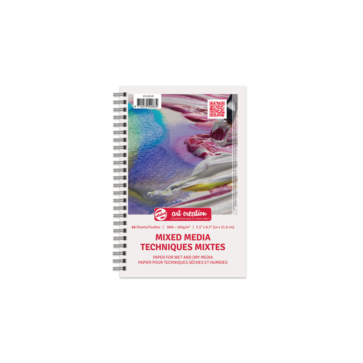 Talens Art Creation Mixed Media Paper Pad, Spiral Bound, 98lbs, 5.5" x 8.5", 40 Sheets