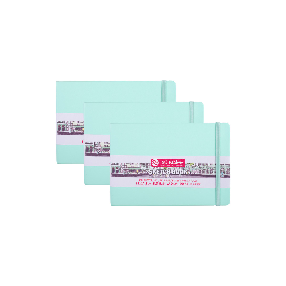 Talens Art Creation Sketchbook, 80 Sheets, 90lbs, Fresh Mint Cover, 8.3" x 5.8" (A5), Pack of 3
