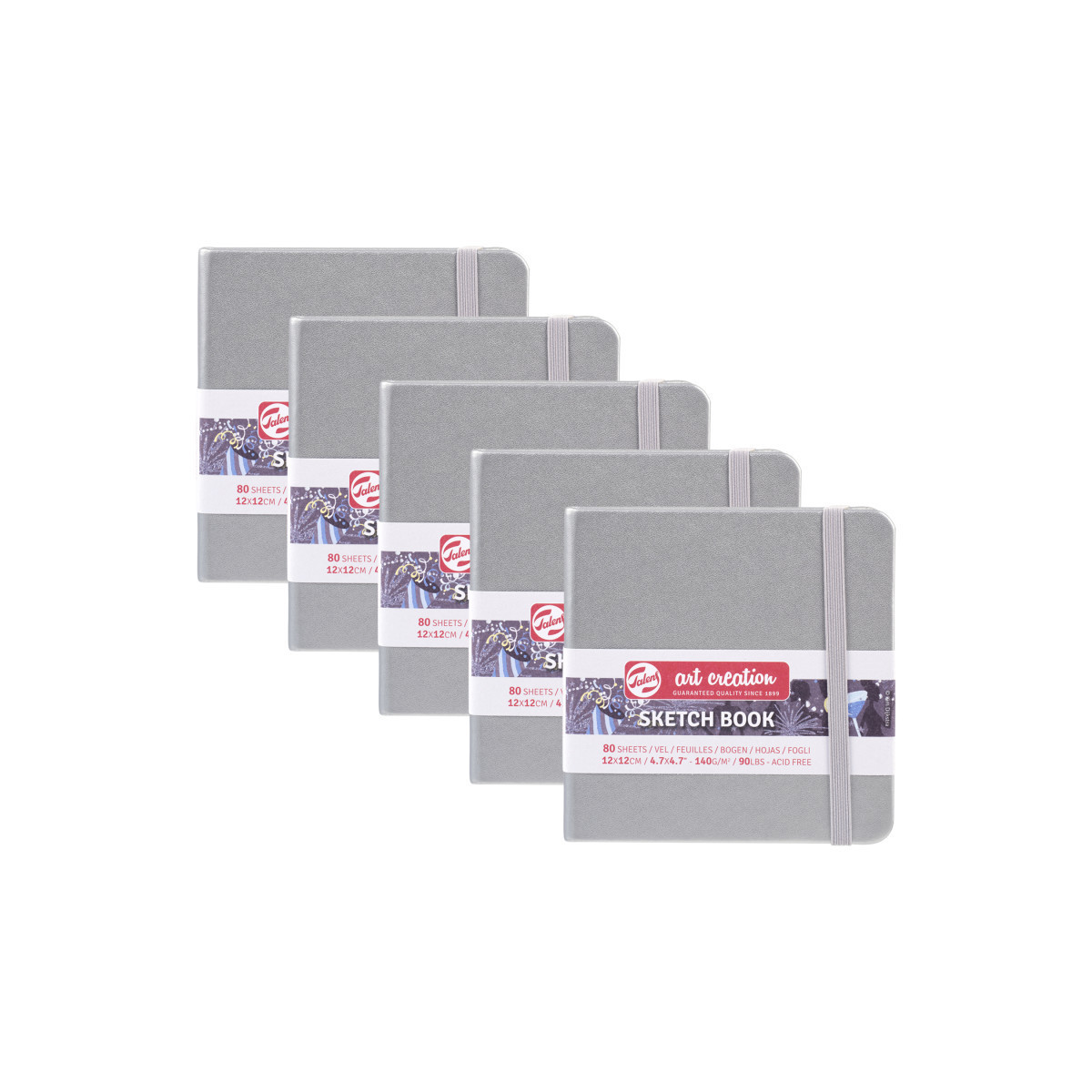 Talens Art Creation Sketchbook, 80 Sheets, 90lbs, Shiny Silver Cover, 4.7" x 4.7", Pack of 5