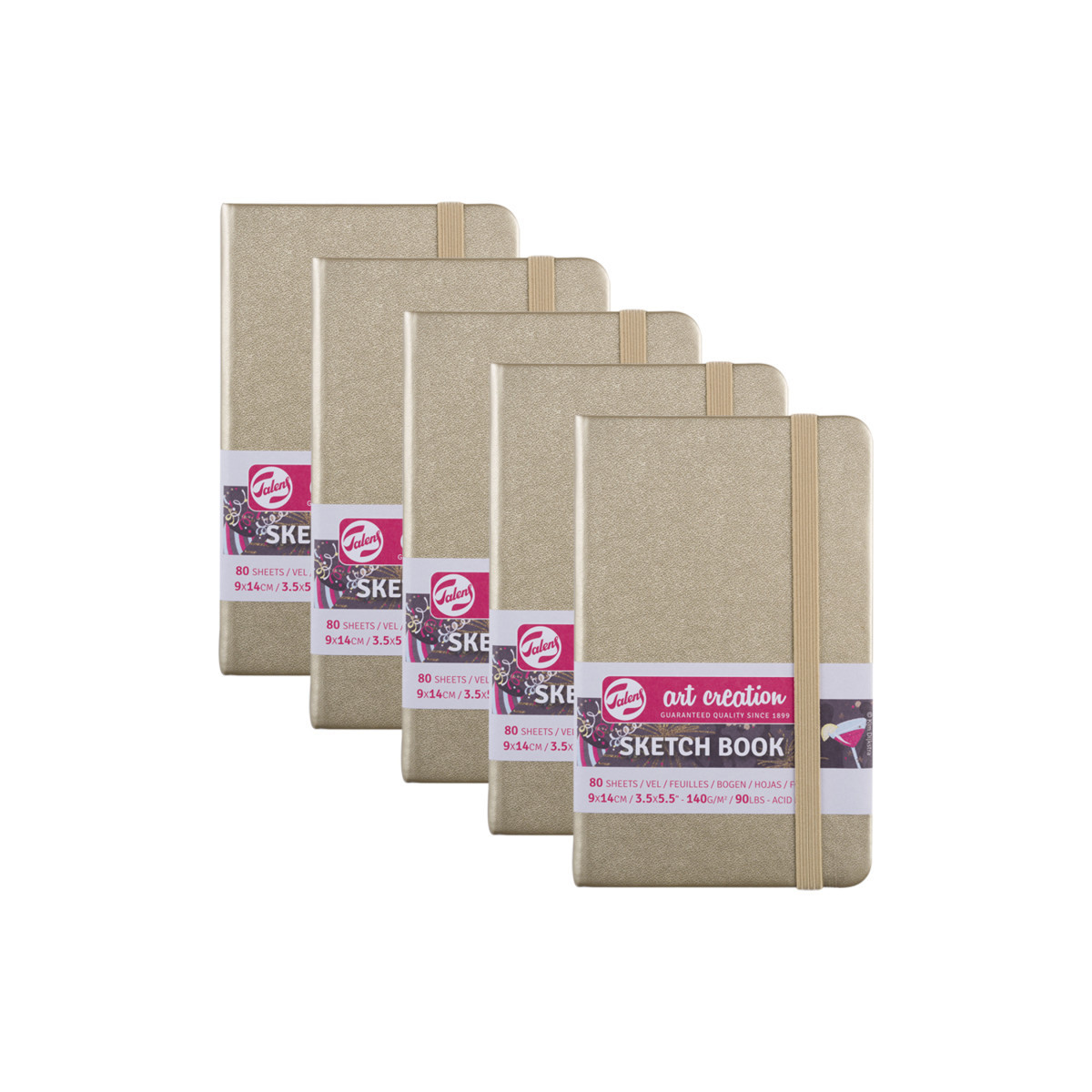 Talens Art Creation Sketchbook, 80 Sheets, 90lbs, White Gold Cover, 3.5" x 5.5", Pack of 5