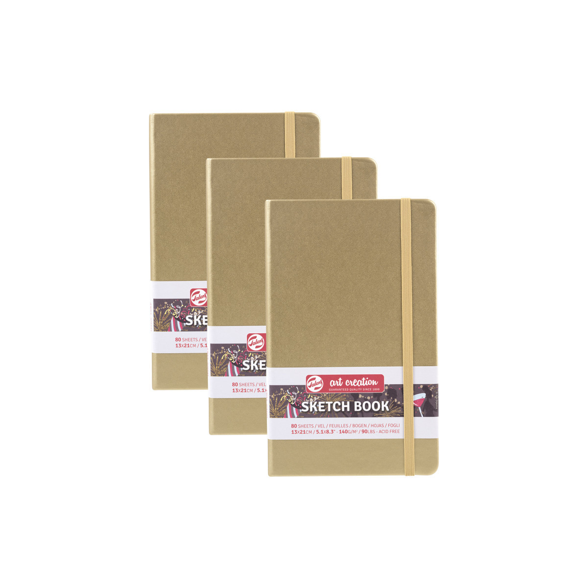Talens Art Creation Sketchbook, 80 Sheets, 90lbs, White Gold Cover, 5.1" x 8.3", Pack of 3